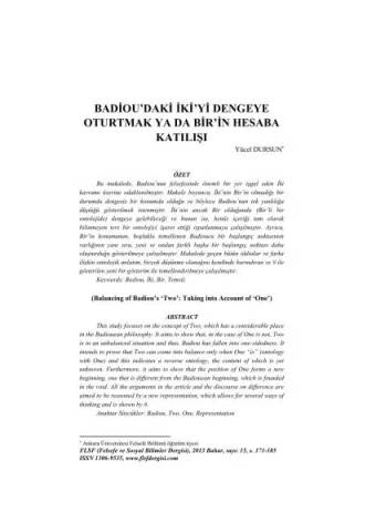 Makale - Badiou'daki Iki'yi Dengeye Oturtmak ya da Bir'in Hesaba Katılışı