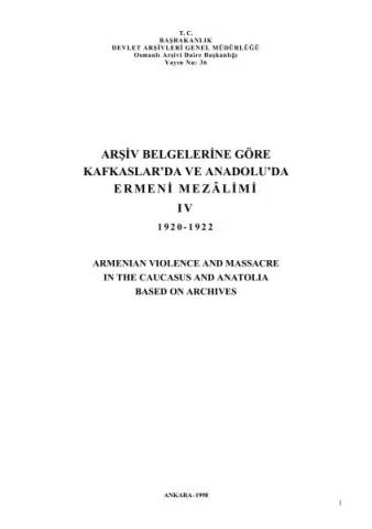 Arşiv Belgelerine Göre Kafkaslar'da ve Anadolu'da Ermeni Mezâlimi IV