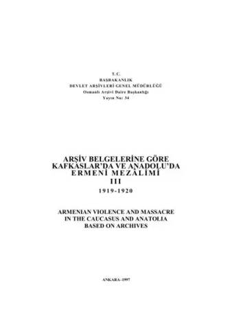 Arşiv Belgelerine Göre Kafkaslar'da ve Anadolu'da Ermeni Mezâlimi III